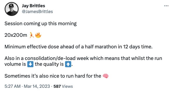 The same here also applies to when you are feeling good and you are hitting all of your key numbers, rather than leave yourself empty, get to know your body and pull the plug when you have had enough quality for one day, that will then in turn allow you to go again the next.